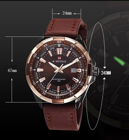 Relógio Masculino NAVIFORCE é o epítome da elegância masculina. Com design moderno e sofisticado, possui detalhes luxuosos e exclusivos que o tornam a escolha perfeita para homens de bom gosto. Além disso, seus mecanismos de alta precisão conferem a ele robustez e durabilidade.